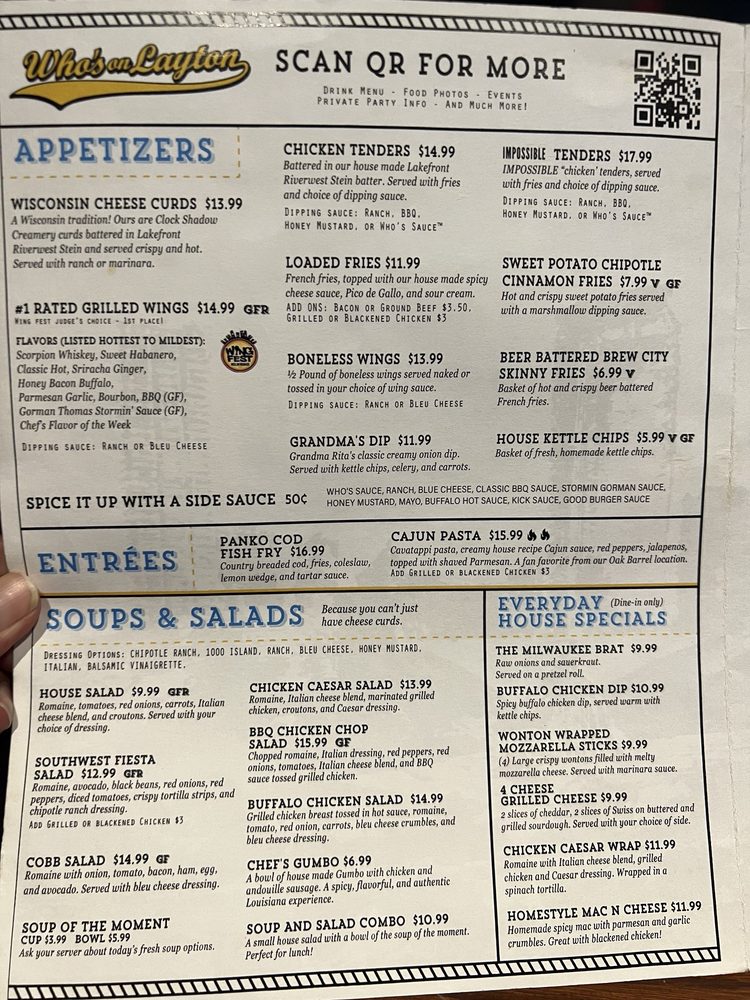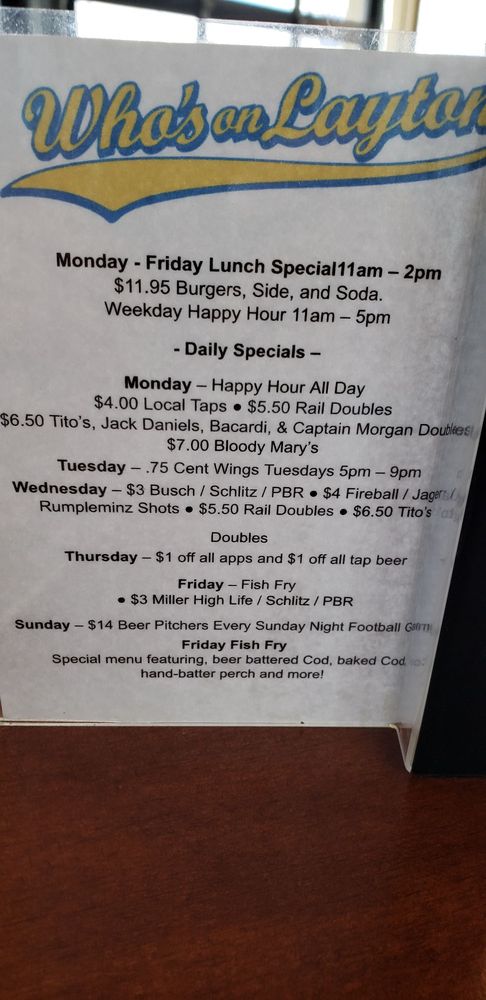 Who’s On Layton is a veteran-owned sports bar located in Milwaukee, WI, offering a range of delicious sandwiches and burgers. Customers rave about the attentive service, diverse drink menu, and tasty food options. The cozy atmosphere, decorated for the holidays, provides a welcoming setting to enjoy a meal or watch the latest game on one of the many TVs. The menu, while somewhat limited, offers favorites like fish fry, smash burgers, and chicken Caesar wraps. Guests also appreciate the free shuttle service to local games, making it a must-visit spot in the area. Whether you're looking for a casual meal with friends or a family outing, Who’s On Layton delivers both quality food and excellent service.